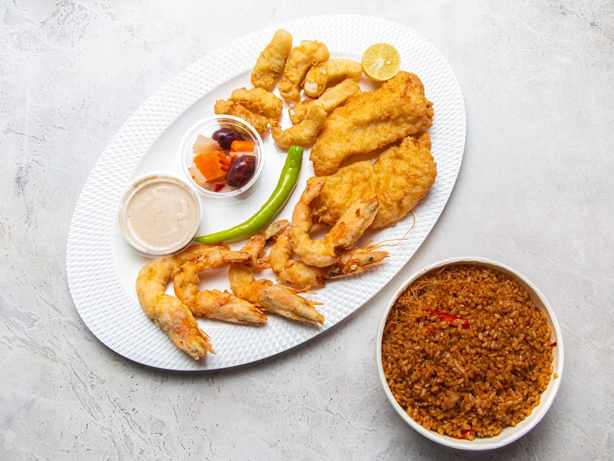 أسماك مشوية على الفحم - أسماك مقلية -طواجن ومأكولات بحرية- جمبري – كاليماري – كابوريا